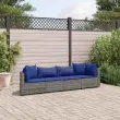 Seti vrtnega pohištva - Vrtna garnitura - Vrtni pohištvo set 4-delna z blazinami siv poli ratan