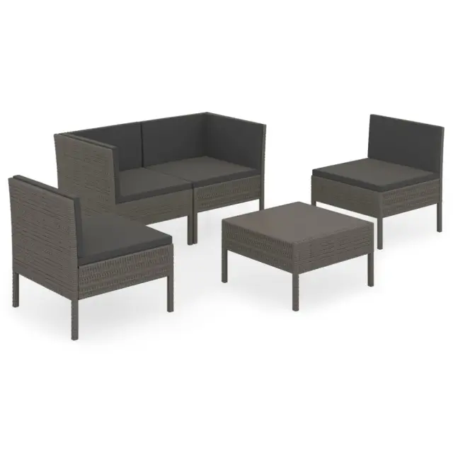 Seti vrtnega pohištva - Vrtna garnitura - Vrtni pohištvo set 5-delna z blazinami poli ratan siva