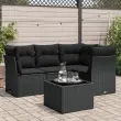 Seti vrtnega pohištva - Vrtna garnitura - Vrtni pohištvo set 5-delna z blazinami črn poli ratan