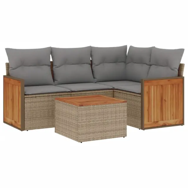 Seti vrtnega pohištva - Vrtna garnitura - Vrtni pohištvo set 5-delna z blazinami bež poli ratan