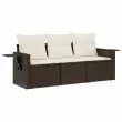 Ta vrtna sedežna garnitura je popoln dodatek za vaše dvorišče, teraso ali verando, saj zagotavlja udoben in vabljiv prostor za klepet z družino in prijatelji ali preprosto za sprostitev in uživanje na prostem. Vzdržljiv material: PE ratan, znan tudi kot poli ratan, je močan sintetični material, ki zahteva malo vzdrževanja in je videti kot naravni ratan. Je lahek, enostaven za čiščenje in se zaradi svoje vzdržljivosti in odpornosti na vremenske vplive pogosto uporablja za zunanje pohištvo. Priročna stranska mizica: To zunanje pohištvo ima zložljive stranske mizice s pnevmatsko vzmetjo na naslonjalih za roke, ki zagotavljajo priročen prostor za shranjevanje potrebščin na dosegu roke. Udobno sedenje: To zunanje pohištvo z debelo oblazinjenimi blazinami zagotavlja udobno sedenje. Prevleko je mogoče odstraniti in oprati: Te sedežne blazine imajo odstranljive prevleke za lažje pranje in vzdrževanje.Modularna zasnova: Ta komplet zunanjega pohištva ima modularno zasnovo, zaradi česar je popolnoma prilagodljiv in enostaven za premikanje, tako da lahko zunanjo garnituro postavite kakor koli želite. Dobro je vedeti:Če želite, da vaše zunanje pohištvo ostane lepo, vam priporočamo, da ga zaščitite z vodoodporno prevleko.Maksimalna nosilnost (na sedež): 110 kgUV-odpornoPotrebno sestavljanje: DaSrednji sedež:Barva: RjavaMaterial: PE ratan, jeklen okvir s prašnim premazomDimenzije: 55 x 62 x 69 cm (Š x G x V)Velikost sedeža: 55 x 55 cm (Š x G)Višina sedeža, merjena od tal: 37 cmKavč z naslonjali za roke:Barva: RjavaMaterial: PE ratan, jeklen okvir s prašnim premazomDimenzije: 62/85 x 62 x 69 cm (Š x G x V)Velikost sedeža: 55 x 55 cm (Š x G)Višina sedeža, merjena od tal: 37 cmVišina naslonjal za roke od tal: 55 cmVelikost stranske mizice: 25 x 23 cm (D x Š)Blazina:Barva: Kremno bela Material prevleke: Tkanina (100 % poliester)Polnilo sedežne blazine: PenaPolnilo hrbtne blazine: bombažna vlaknaDimenzije sedežne blazine: 55 x 55 x 3 cm (Š x G x D)Dimenzije hrbtne blazine: 55 x 45 x 13 cm (D x Š x D)Paket vsebuje:1 x Sredinski sedež2 x Kavč z naslonjali za roke3 x Blazina za hrbet6 x Sedežna blazina s snemljivo pralno prevleko