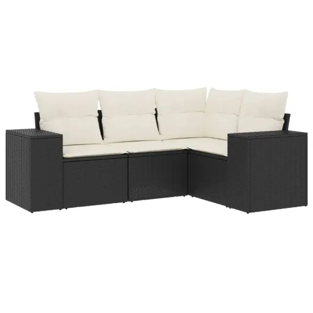 Seti vrtnega pohištva - Vrtna garnitura - Vrtni pohištvo set 4-delna z blazinami črna poli ratan
