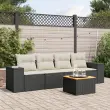 Ta vrtna sedežna garnitura je popoln dodatek za vaše dvorišče, teraso ali verando, saj zagotavlja udoben in vabljiv prostor za klepet z družino in prijatelji ali preprosto za sprostitev in uživanje na prostem. Vzdržljiv material: PE ratan, znan tudi kot poli ratan, je močan sintetični material, ki zahteva malo vzdrževanja in je videti kot naravni ratan. Je lahek, enostaven za čiščenje in se zaradi svoje vzdržljivosti in odpornosti na vremenske vplive pogosto uporablja za zunanje pohištvo.Stabilna mizna plošča, ki je enostavna za čiščenje: Ta vrtna miza ima ploščo iz akacijevega lesa, ki je čvrsta, vzdržljiva in jo je enostavno čistiti z vlažno krpo. Udobno sedenje: To zunanje pohištvo z debelo oblazinjenimi blazinami zagotavlja udobno sedenje. Prevleko je mogoče odstraniti in oprati: Te sedežne blazine imajo odstranljive prevleke za lažje pranje in vzdrževanje.Modularna zasnova: Ta komplet zunanjega pohištva ima modularno zasnovo, zaradi česar je popolnoma prilagodljiv in enostaven za premikanje, tako da lahko zunanjo garnituro postavite kakor koli želite. Dobro je vedeti:Če želite, da vaše zunanje pohištvo ostane lepo, vam priporočamo, da ga zaščitite z vodoodporno prevleko.Maksimalna nosilnost (na sedež): 110 kgUV-odpornoPotrebno sestavljanje: DaSrednji sedež:Barva: ČrnaMaterial: PE ratan, jeklen okvir s prašnim premazomDimenzije: 55 x 62 x 69 cm (Š x G x V)Velikost sedeža: 55 x 55 cm (Š x G)Višina sedeža, merjena od tal: 37 cmKavč z naslonjali za roke:Barva: ČrnaMaterial: PE ratan, jeklen okvir s prašnim premazomDimenzije: 83 x 62 x 69 cm (Š x G x V)Velikost sedeža: 55 x 55 cm (Š x G)Višina sedeža, merjena od tal: 37 cmVišina naslonjal za roke od tal: 55 cmMiza:Barva: ČrnaMaterial: PE ratan, prašno premazano jeklo, trden akacijev les z oljnim premazomDimenzije: 55 x 55 x 37 cm (D x Š x V)Blazina:Barva: Kremno belaMaterial prevleke: Tkanina (100 % poliester)Polnilo sedežne blazine: PenaPolnilo hrbtne blazine: bombažna vlaknaDimenzije sedežne blazine: 55 x 55 x 3 cm (Š x G x D)Dimenzije hrbtne blazine: 55 x 45 x 13 cm (D x Š x D)Paket vsebuje:2 x Sredinski sedež2 x Kavč z naslonjali za roke1 x Vrtna miza4 x Blazina za hrbet4 x Sedežna blazina s snemljivo in pralno prevleko