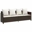 Ta vrtna sedežna garnitura je popoln dodatek za vaše dvorišče, teraso ali verando, saj zagotavlja udoben in vabljiv prostor za klepet z družino in prijatelji ali preprosto za sprostitev in uživanje na prostem. Vzdržljiv material: PE ratan, znan tudi kot poli ratan, je močan sintetični material, ki zahteva malo vzdrževanja in je videti kot naravni ratan. Je lahek, enostaven za čiščenje in se zaradi svoje vzdržljivosti in odpornosti na vremenske vplive pogosto uporablja za zunanje pohištvo.Nastavljivo naslonjalo: To zunanje pohištvo ima naslonjalo za hrbet s 3 nastavljivimi položaji in naslonjalo za noge z 2 nastavljivima položajema, kar vam omogoča, da zlahka najdete najudobnejši in najprimernejši položaj za sprostitev.Udobno sedenje: To zunanje pohištvo z debelo oblazinjenimi blazinami zagotavlja udobno sedenje.Vsestranski stolček za noge: Stolček je vsestransko uporaben, saj služi kot udoben naslon za noge, ko ležite na kavču, ali kot dodaten sedež na vrtu.Prevleko je mogoče odstraniti in oprati: Te sedežne blazine imajo odstranljive prevleke za lažje pranje in vzdrževanje. Dobro je vedeti:Če želite, da vaše zunanje pohištvo ostane lepo, vam priporočamo, da ga zaščitite z vodoodporno prevleko.Maksimalna nosilnost (na sedež): 110 kgUV-odpornoPotrebno sestavljanje: DaKavč štirised:Barva: RjavaMaterial: PE ratan, jeklen okvir s prašnim premazomDimenzije: 204 x 55 x 69,5 cm (D x Š x V)Velikost sedeža: 200 x 52,5 cm (Š x G)Višina sedeža, merjena od tal: 36,5 cmNastavljiva višina naslonjala: 63/74/84 cmNastavljiva višina podnožja: 58/64 cmVišina naslonjala za roke od tal: 56,5 cmKavč brez naslonov za roke:Barva: RjavaMaterial: PE ratan, jeklen okvir s prašnim premazomDimenzije (vsak): 52 x 48 x 61,5 cm (Š x G x V)Velikost sedeža: 50 x 48 cm (Š x G)Višina sedeža od tal (brez blazine): 36,5 cmStolček za noge:Barva: RjavaMaterial: PE ratan, jeklen okvir s prašnim premazomDimenzije (vsak): 50 x 48 x 36,5 cm (Š x G x V)Velikost sedeža: 50 x 48 cm (Š x G)Višina sedeža od tal (brez blazine): 36,5 cmBlazina:Barva: Kremno belaMaterial prevleke: Tkanina (100 % poliester)Polnilo sedežne blazine: PenaPolnilo hrbtne blazine: bombažna vlaknaDimenzije sedežne blazine (kavč štirised): 200 x 52,5 x 3 cm (Š x G x D)Dimenzije sedežne blazine (brez naslonjal za roke / stolček za noge): 50 x 48 x 3 cm (Š x G x D)Dimenzije hrbtne blazine: 45 x 45 x 10 cm (D x Š x D)Paket vsebuje:1 x Kavč štirised2 x Kavč brez naslonjal za roke2 x Stolček za noge5 x Sedežna blazina s snemljivo pralno prevleko8 x Blazina za hrbet