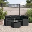 Ta vrtna sedežna garnitura je popoln dodatek za vaše dvorišče, teraso ali verando, saj zagotavlja udoben in vabljiv prostor za klepet z družino in prijatelji ali preprosto za sprostitev in uživanje na prostem. Vzdržljiv material: PE ratan, znan tudi kot poli ratan, je močan sintetični material, ki zahteva malo vzdrževanja in je videti kot naravni ratan. Je lahek, enostaven za čiščenje in se zaradi svoje vzdržljivosti in odpornosti na vremenske vplive pogosto uporablja za zunanje pohištvo.Udobno sedenje: To zunanje pohištvo z debelo oblazinjenimi blazinami zagotavlja udobno sedenje. Široki nasloni za roke so tudi priročen prostor za mobilni telefon, skodelice ali druge manjše predmete, da jih lahko zlahka dosežete.Prevleko je mogoče odstraniti in oprati: Te sedežne blazine imajo odstranljive prevleke za lažje pranje in vzdrževanje.Steklena mizna plošča: Površina zunanje mize je izdelana iz močnega in trpežnega kaljenega stekla, kar omogoča enostavno čiščenje z vlažno krpo in vašemu zunanjemu prostoru doda pridih elegance.Modularna zasnova: Ta komplet zunanjega pohištva ima modularno zasnovo, zaradi česar je popolnoma prilagodljiv in enostaven za premikanje, tako da lahko zunanjo garnituro postavite kakor koli želite. Dobro je vedeti:Če želite, da vaše zunanje pohištvo ostane lepo, vam priporočamo, da ga zaščitite z vodoodporno prevleko.Maksimalna nosilnost (na sedež): 110 kgUV-odpornoPlastične nastavljive nogePotrebno sestavljanje: DaKotni sedež s širokim naslonom za roke:Barva: ČrnaMaterial: PE ratan, jeklen okvir s prašnim premazomDimenzije: 65,5 x 62 x 69 cm (Š x G x V)Velikost sedeža: 55 x 55 cm (Š x G)Višina sedeža, merjena od tal: 37 cmVišina naslonjal za roke od tal: 55 cmŠirina naslonjala za roke: 10 cmKotni sedež:Barva: ČrnaMaterial: PE ratan, jeklen okvir s prašnim premazomDimenzije: 62 x 62 x 69 cm (Š x G x V)Velikost sedeža: 55 x 55 cm (Š x G)Višina sedeža, merjena od tal: 37 cmSrednji sedež:Barva: ČrnaMaterial: PE ratan, jeklen okvir s prašnim premazomDimenzije: 55 x 62 x 69 cm (Š x G x V)Velikost sedeža: 55 x 55 cm (Š x G)Višina sedeža, merjena od tal: 37 cmMiza:Barva: ČrnaMaterial: PE ratan, jeklo s prašnim premazom, kaljeno stekloDimenzije: 55 x 55 x 37 cm (Š x G x V)Blazina:Barva: ČrnaMaterial prevleke: Tkanina (100 % poliester)Polnilo sedežne blazine: PenaPolnilo hrbtne blazine: bombažna vlaknaDimenzije sedežne blazine: 55 x 55 x 3 cm (Š x G x D)Dimenzije hrbtne blazine: 55 x 45 x 13 cm (D x Š x D)Paket vsebuje:2 x Kotni sedež s širokim naslonom za roke1 x Kotni sedež1 x Sredinski sedež1 x Miza5 x Blazina za hrbet4 x Sedežna blazina s snemljivo in pralno prevleko