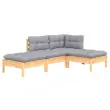 Seti vrtnega pohištva - Vrtna garnitura - Vrtni pohištvo set 4-delna s sivimi blazinami borovina