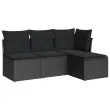 Seti vrtnega pohištva - Vrtna garnitura - Vrtni pohištvo set 4-delna z blazinami črna poli ratan