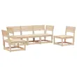 Ta vrtna sedežna garnitura je popoln dodatek za vaše dvorišče, teraso ali verando, saj zagotavlja udoben in vabljiv prostor za klepet z družino in prijatelji ali preprosto za sprostitev in uživanje na prostem. Trdna borovina: Trdna borovina je čudovit naravni material. Borovina ima ravne vzorce, grče pa dajejo materialu njegov značilen, rustikalen videz.Udobno sedenje: To zunanje pohištvo z nasloni za hrbet zagotavlja udobno sedenje.Zasnova iz letvic: Zasnova zunanjega kavča iz letvic učinkovito preprečuje nabiranje vode, kar zagotavlja, da ostane sedež suh in brez gnitja.Modularna zasnova: Ta komplet zunanjega pohištva ima modularno zasnovo, zaradi česar je popolnoma prilagodljiv in enostaven za premikanje, tako da lahko zunanjo garnituro postavite kakor koli želite. Dobro je vedeti:Če želite, da vaše zunanje pohištvo ostane lepo, vam priporočamo, da ga zaščitite z vodoodporno prevleko.Maksimalna nosilnost (na sedež): 110 kgPotrebno sestavljanje: DaKavč brez naslonov za roke:Material: Trdna borovina (neobdelana)Dimenzije: 63,5 x 73 x 78 cm (Š x G x V)Velikost sedeža: 63,5 x 63,5 cm (Š x G)Višina naslonjala za hrbet: 40 cmVišina sedeža, merjena od tal: 38 cmKotni kavč:Material: Trdna borovina (neobdelana)Dimenzije: 73 x 73 x 78 cm (Š x G x V)Višina sedeža, merjena od tal: 38 cmVelikost sedeža: 63,5 x 63,5 cm (Š x G)Paket vsebuje:2 x Kotni kavč3 x Kavč brez naslonov za roke Največ 110 kg na sedež.