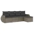 Seti vrtnega pohištva - Vrtna garnitura - Vrtni pohištvo set 5-delna z blazinami siv poli ratan
