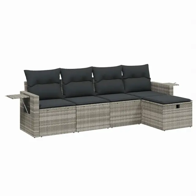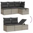 Seti vrtnega pohištva - Vrtna garnitura - Vrtni pohištvo set 5-delna z blazinami siv poli ratan