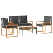 Ta vrtna sedežna garnitura je popoln dodatek za vaše dvorišče, teraso ali verando, saj zagotavlja udoben in vabljiv prostor za klepet z družino in prijatelji ali preprosto za sprostitev in uživanje na prostem. Vzdržljiv material: PE ratan, znan tudi kot poli ratan, je močan sintetični material, ki zahteva malo vzdrževanja in je videti kot naravni ratan. Je lahek, enostaven za čiščenje in se zaradi svoje vzdržljivosti in odpornosti na vremenske vplive pogosto uporablja za zunanje pohištvo.Udobno sedenje: To zunanje pohištvo z debelo oblazinjenimi blazinami zagotavlja udobno sedenje.Prevleko je mogoče odstraniti in oprati: Te sedežne blazine imajo odstranljive prevleke za lažje pranje in vzdrževanje.Stabilna mizna plošča, ki je enostavna za čiščenje: Ta vrtna miza ima ploščo iz akacijevega lesa, ki je čvrsta, vzdržljiva in jo je enostavno čistiti z vlažno krpo.Robusten in stabilen okvir: Prašno premazan jeklen in lesen okvir zagotavlja, da je vrtno pohištvo močno in stabilno za vsakodnevno uporabo na prostem. Dobro je vedeti:Če želite, da vaše zunanje pohištvo ostane lepo, vam priporočamo, da ga zaščitite z vodoodporno prevleko.UV-odpornoPotrebno sestavljanje: DaMiza:Barva: Črna in rjavaMaterial: PE ratan, jeklo s prašnim premazom, trden akacijev les z naravnim premazomDimenzije: 75 x 38 x 32 cm (D x Š x V)Klop:Barva: Črna in rjavaMaterial: PE ratan, jeklo s prašnim premazom, trden akacijev les z naravnim premazomDimenzije: 119 x 61 x 79 cm (Š x G x V)Velikost sedeža: 110 x 51 cm (Š x G)Višina sedeža od tal: 40 cmVišina naslonjal za roke, merjena od tal: 53 cmStol:Barva: Črna in rjavaMaterial: PE ratan, jeklo s prašnim premazom, trden akacijev les z naravnim premazomDimenzije (vsak): 57 x 61 x 79 cm (Š x G x V)Velikost sedeža: 47 x 51 cm (Š x G)Višina sedeža od tal: 40 cmVišina naslonjal za roke, merjena od tal: 53 cmMaksimalna nosilnost (na sedež): 110 kgBlazina:Barva: Temno sivaMaterial prevleke: Tkanina (100 % poliester)Polnilo sedežne blazine: PenaPolnilo hrbtne blazine: bombažna vlaknaDimenzije sedežne blazine: 47 x 51 x 3 cm (Š x G x D)Dimenzije sedežne blazine: 110 x 51 x 3 cm (D x Š X D)Dimenzije hrbtne blazine: 50 x 41 x 10 cm (D x Š x D)Paket vsebuje:1 x Vrtna miza2 x Vrtni stol1 x Vrtna klop4 x Blazina za hrbet6 x Sedežna blazina s snemljivo pralno prevleko Največ 110 kg na sedež. Zavedajte se nevarnosti odprtega ognja in drugih virov močne vročine v bližini izdelka.