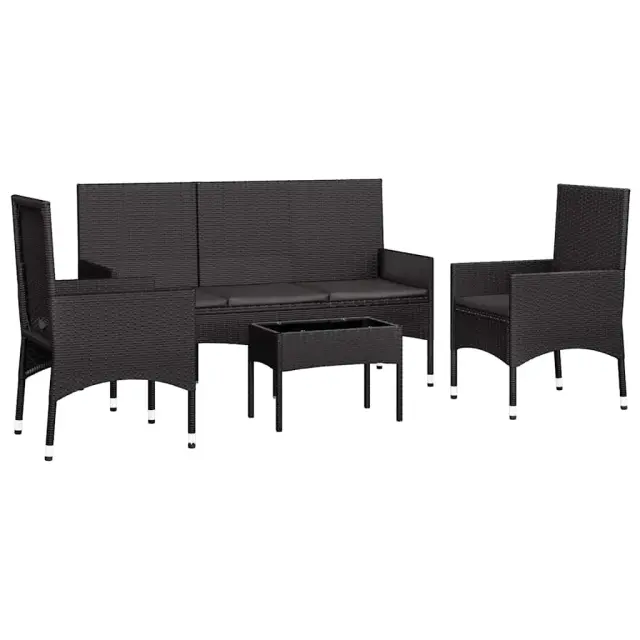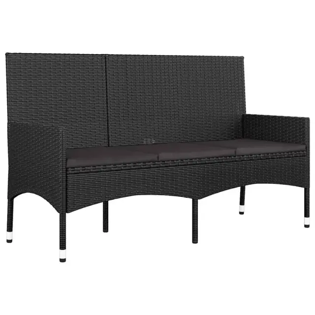 S to vrtno sedežno garnituro uživajte v prijetnem pitju kave v svojem zunanjem prostoru! Je odličen dodatek za vaš vrt in teraso, saj bo naredila trajen vtis! Vzdržljiv material: Poli ratan je izjemno odporen material, ki je vzdržljiv v različnih vremenskih razmerah. Prav tako potrebuje malo vzdrževanja.Mehke blazine: Vrtni garnituri so priložene debele, odstranljive blazine, ki zagotavljajo največje udobje pri sedenju.Udobna naslonjala za roke in hrbet: Zaradi naslonjal za roke in hrbet si lahko udobno odpočijete roke in hrbet.Trdna mizna plošča: Trdna površina te vrtne klubske mizice ponuja prostor za odlaganje prigrizkov, košar s sadjem, okrasnih predmetov in drugih potrebščin Dobro je vedeti:Za čim lažjo montažo je vsakemu izdelku priložen priročnik. Opomba:Če želite, da vaše zunanje pohištvo ostane lepo, vam priporočamo, da ga zaščitite z vodoodporno prevleko.Klubska mizica:Barva: ČrnaMaterial: PE ratan, jeklo s prašnim premazom, stekloDimenzije: 50 x 30 x 35 cm (D x Š x V) Stol:Barva: ČrnaMaterial: PE ratan, jeklen okvir s prašnim premazomDimenzije: 45 x 51 x 85 cm (Š x G x V)Velikost naslonjala: 45 x 50 cm (Š x V)Višina sedeža, merjena od tal: 38 cmVišina naslonjal za roke, merjena od tal: 54 cmKlop za 3 osebe:Barva: ČrnaMaterial: PE ratan, jeklen okvir s prašnim premazomDimenzije: 140 x 51 x 85 cm (Š x G x V)Višina naslonjala za hrbet: 50 cmŠirina sedeža: 136 cmGlobina sedeža: 45 cmVišina sedeža, merjena od tal: 38 cmVišina naslonjal za roke, merjena od tal: 54 cmBlazina:Barva: ČrnaMaterial: Blago (100 % poliester)Material polnila: PenaDebelina: 3 cmPaket vsebuje:2 x Stol1 x Klop za 3 osebe1 x Klubska mizica5 x Blazina za sedež