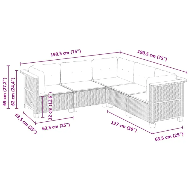 Seti vrtnega pohištva - Vrtna garnitura - Vrtni pohištvo set 5-delna z blazinami siv poli ratan