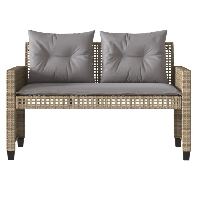 Ta vrtna sedežna garnitura je popoln dodatek za vaše dvorišče, teraso ali verando, saj zagotavlja udoben in vabljiv prostor za klepet z družino in prijatelji ali preprosto za sprostitev in uživanje na prostem. Vzdržljiv material: PE ratan, znan tudi kot poli ratan, je močan sintetični material, ki zahteva malo vzdrževanja in je videti kot naravni ratan. Je lahek, enostaven za čiščenje in se zaradi svoje vzdržljivosti in odpornosti na vremenske vplive pogosto uporablja za zunanje pohištvo.Nastavljiva mizna plošča: Z dvigom mizne plošče lahko mizo povišate, s čimer se zunanja klubska mizica spremeni v jedilno mizo. Popolna je za sprejemanje gostov ali uživanje v obrokih na prostem.Udobno sedenje: To zunanje pohištvo z debelo oblazinjenimi blazinami zagotavlja udobno sedenje.Prevleko je mogoče odstraniti in oprati: Te sedežne blazine imajo odstranljive prevleke za lažje pranje in vzdrževanje.Steklena mizna plošča: Površina zunanje mize je izdelana iz močnega in trpežnega kaljenega stekla, kar omogoča enostavno čiščenje z vlažno krpo in vašemu zunanjemu prostoru doda pridih elegance. Dobro je vedeti:Če želite, da vaše zunanje pohištvo ostane lepo, vam priporočamo, da ga zaščitite z vodoodporno prevleko.Maksimalna nosilnost (na sedež): 110 kgUV-odpornoPotrebno sestavljanje: DaVrtna klop:Barva: BežMaterial: PE ratan, jeklen okvir s prašnim premazomDimenzije: 48 x 57 x 79 cm (Š x G x V)Velikost sedeža: 49 x 53 cm (Š x G)Višina sedeža od tal: 45 cmVišina naslonjala za roke, merjena od tal: 62 cmVrtna miza:Barva: BežMaterial: PE ratan, jeklo s prašnim premazom, kaljeno stekloDimenzije: 50 x 50 x 72 cm (D x Š x V)Stolček za noge:Barva: BežMaterial: PE ratan, jeklen okvir s prašnim premazomDimenzije: 50 x 50 x 35 cm (Š x G x V)Blazina:Barva: Svetlo sivaMaterial prevleke: Tkanina (100 % poliester)Polnilo sedežne blazine: PenaPolnilo hrbtne blazine: bombažna vlaknaDimenzije sedežne blazine: 53 x 51 x 3 cm (Š x G x D)Dimenzije hrbtne blazine: 55 x 40 x 10 cm (Š x G x D)Dimenzije blazine stolčka za noge: 50 x 50 x 3 cm (Š x G x D)Paket vsebuje:1 x Vrtna klop1 x Vrtna miza2 x Stolček za noge2 x Blazina za hrbet6 x Sedežna blazina s snemljivo pralno prevleko Največ 110 kg na sedež. Zavedajte se nevarnosti odprtega ognja in drugih virov močne vročine v bližini izdelka.