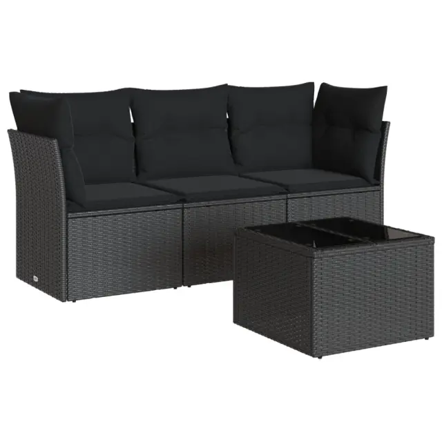 Seti vrtnega pohištva - Vrtna garnitura - Vrtni pohištvo set 4-delna z blazinami črna poli ratan