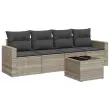 Seti vrtnega pohištva - Vrtna garnitura - Vrtni pohištvo set 5-delna z blazinami siv poli ratan