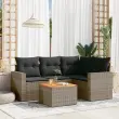 Seti vrtnega pohištva - Vrtna garnitura - Vrtni pohištvo set 5-delna z blazinami siv poli ratan
