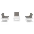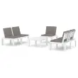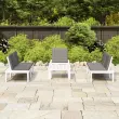Ta vrtna garnitura je odlična izbira za sproščanje in uživanje v lepem vremenu, za dremanje ali klepetanje z družino ali prijatelji. Vrtna sedežna garnitura je narejena iz plastike, zato je enostavna za čiščenje in stabilna. Miza s trdno površino je idealna za odlaganje hrane in pijače, da bo na dosegu roke. Naslonjala za hrbet in blazine prispevajo k udobnemu sedenju na prostem.Barva: BelaBarva blazin: AntracitnaMaterial: PlastikaMaterial blazine: Blago (55 % bombaž, 45 % poliester)Dimenzije mize: 65 x 65 x 33 cm (Š x G x V)Dimenzije stola: 65 x 65 x 70 cm (Š x G x V)Dimenzije klopi: 130 x 65 x 70 cm (Š x G x V)Debelina blazine: 5 cmPotrebno sestavljanje: DaPaket vsebuje:1 x Miza2 x Klop1 x Stol5 x Blazina za sedež5 x Blazina za hrbet Maksimalna teža na sedež: 110 kg. Bodite pozorni na tveganje odprtega ognja in druge vire močne toplote v bližini izdelka.