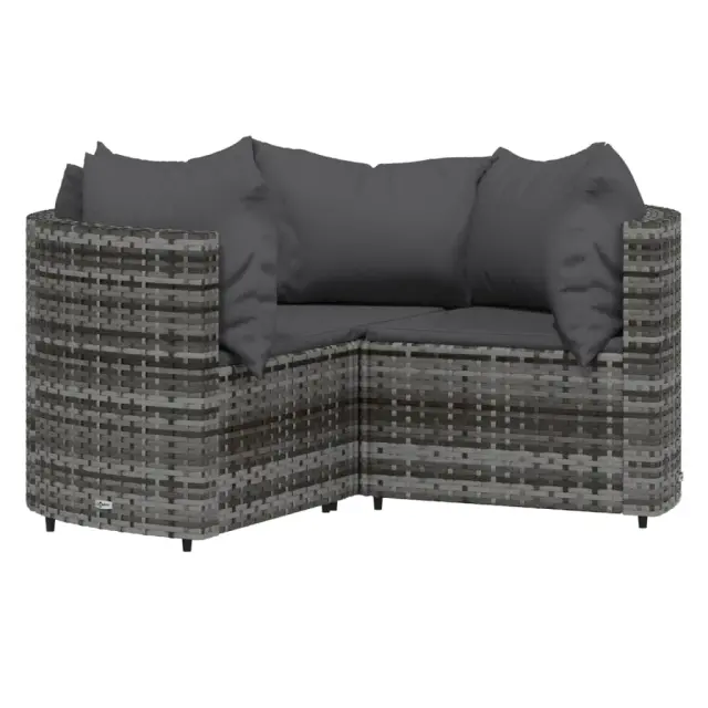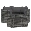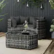 Seti vrtnega pohištva - Vrtna garnitura - Vrtni pohištvo set 4-delna z blazinami siv poli ratan