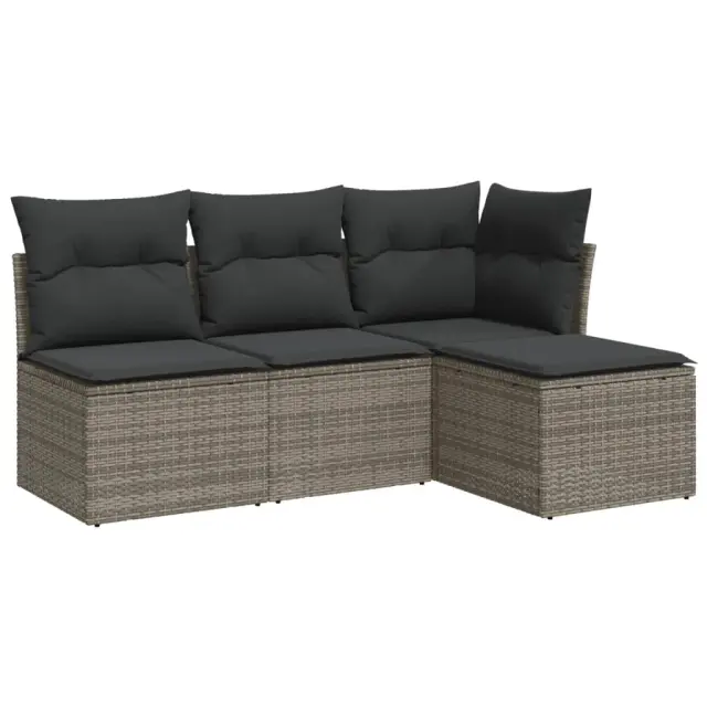 Ta vrtna sedežna garnitura je popoln dodatek za vaše dvorišče, teraso ali verando, saj zagotavlja udoben in vabljiv prostor za klepet z družino in prijatelji ali preprosto za sprostitev in uživanje na prostem. Vzdržljiv material: PE ratan, znan tudi kot poli ratan, je močan sintetični material, ki zahteva malo vzdrževanja in je videti kot naravni ratan. Je lahek, enostaven za čiščenje in se zaradi svoje vzdržljivosti in odpornosti na vremenske vplive pogosto uporablja za zunanje pohištvo.Funkcija shranjevanja z vodoodporno vrečo: Vsak vrtni sedež ima prostor za shranjevanje pod sedežem, skupaj z vodoodporno vrečo za shranjevanje blazin, igrač in drugih predmetov. Notranje vreče imajo zgornjo prevleko in jih je mogoče s pomočjo primenjal varno pritrditi na sedeže za dodatno varnost.Prevleko je mogoče odstraniti in oprati: Te sedežne blazine imajo odstranljive prevleke za lažje pranje in vzdrževanje.Modularna zasnova: Ta komplet zunanjega pohištva ima modularno zasnovo, zaradi česar je popolnoma prilagodljiv in enostaven za premikanje, tako da lahko zunanjo garnituro postavite kakor koli želite. Dobro je vedeti:Če želite, da vaše zunanje pohištvo ostane lepo, vam priporočamo, da ga zaščitite z vodoodporno prevleko.Celotne dimenzije kavča: 172 x 117 x 69 cm (Š x G x V)Dimenzije vodoodporne vreče: 55 x 53 x 34 cm (D x Š x V)Maksimalna nosilnost (na sedež): 110 kgUV-odpornoPlastične nastavljive nogePotrebno sestavljanje: DaKotni sedež:Barva: SivaMaterial: PE ratan, jeklen okvir s prašnim premazomDimenzije: 62 x 62 x 69 cm (Š x G x V)Velikost sedeža: 55 x 55 cm (Š x G)Višina sedeža, merjena od tal: 37 cmSrednji sedež:Barva: SivaMaterial: PE ratan, jeklen okvir s prašnim premazomDimenzije: 55 x 62 x 69 cm (Š x G x V)Velikost sedeža: 55 x 55 cm (Š x G)Višina sedeža, merjena od tal: 37 cmStolček za noge:Barva: SivaMaterial: PE ratan, jeklen okvir s prašnim premazomDimenzije: 55 x 55 x 37 cm (Š x G x V)Blazina:Barva: Temno sivaMaterial prevleke: Tkanina (100 % poliester)Polnilo sedežne blazine: PenaPolnilo hrbtne blazine: bombažna vlaknaDimenzije sedežne blazine: 55 x 55 x 3 cm (Š x G x D)Dimenzije hrbtne blazine: 55 x 45 x 13 cm (D x Š x D)Paket vsebuje:1 x Kotni kavč s funkcijo shranjevanja z vodoodporno vrečo2 x Srednji kavč s funkcijo shranjevanja z vodoodporno vrečo1 x Vrtni stolček za noge4 x Blazina za hrbet4 x Sedežna blazina s snemljivo in pralno prevleko