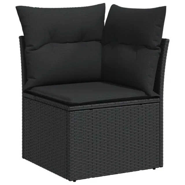 Ta vrtna sedežna garnitura je popoln dodatek za vaše dvorišče, teraso ali verando, saj zagotavlja udoben in vabljiv prostor za klepet z družino in prijatelji ali preprosto za sprostitev in uživanje na prostem. Vzdržljiv material: PE ratan, znan tudi kot poli ratan, je močan sintetični material, ki zahteva malo vzdrževanja in je videti kot naravni ratan. Je lahek, enostaven za čiščenje in se zaradi svoje vzdržljivosti in odpornosti na vremenske vplive pogosto uporablja za zunanje pohištvo.Udobno sedenje: To zunanje pohištvo z debelo oblazinjenimi blazinami zagotavlja udobno sedenje.Stabilna mizna plošča, ki je enostavna za čiščenje: Ta vrtna miza ima ploščo iz akacijevega lesa, ki je čvrsta, vzdržljiva in jo je enostavno čistiti z vlažno krpo.Prevleko je mogoče odstraniti in oprati: Te sedežne blazine imajo odstranljive prevleke za lažje pranje in vzdrževanje.Modularna zasnova: Ta komplet zunanjega pohištva ima modularno zasnovo, zaradi česar je popolnoma prilagodljiv in enostaven za premikanje, tako da lahko zunanjo garnituro postavite kakor koli želite. Dobro je vedeti:Če želite, da vaše zunanje pohištvo ostane lepo, vam priporočamo, da ga zaščitite z vodoodporno prevleko.Maksimalna nosilnost (na sedež): 110 kgUV-odpornoPlastične nastavljive nogePotrebno sestavljanje: DaKotni sedež:Barva: ČrnaMaterial: PE ratan, jeklen okvir s prašnim premazomDimenzije: 62 x 62 x 69 cm (Š x G x V)Velikost sedeža: 55 x 55 cm (Š x G)Višina sedeža, merjena od tal: 37 cmSrednji sedež:Barva: ČrnaMaterial: PE ratan, jeklen okvir s prašnim premazomDimenzije: 55 x 62 x 69 cm (Š x G x V)Velikost sedeža: 55 x 55 cm (Š x G)Višina sedeža, merjena od tal: 37 cmKavč z naslonjali za roke:Barva: ČrnaMaterial: PE ratan, jeklen okvir s prašnim premazomDimenzije: 59 x 62 x 69 cm (Š x G x V)Velikost sedeža: 55 x 55 cm (Š x G)Višina sedeža, merjena od tal: 37 cmVišina naslonjal za roke od tal: 55 cmMiza:Barva: ČrnaMaterial: PE ratan, trden akacijev les z oljnim premazomDimenzije: 55 x 55 x 37 cm (D x Š x V)Blazina:Barva: ČrnaMaterial prevleke: Tkanina (100 % poliester)Polnilo sedežne blazine: PenaPolnilo hrbtne blazine: bombažna vlaknaDimenzije sedežne blazine: 55 x 55 x 3 cm (Š x G x D)Dimenzije hrbtne blazine: 55 x 45 x 13 cm (D x Š x D)Paket vsebuje:2 x Kavč z naslonjali za roke1 x Sredinski sedež1 x Kotni sedež4 x Blazina za hrbet5 x Sedežna blazina s snemljivo pralno prevleko1 x Vrtna miza