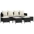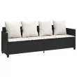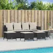 Ta vrtna sedežna garnitura je popoln dodatek za vaše dvorišče, teraso ali verando, saj zagotavlja udoben in vabljiv prostor za klepet z družino in prijatelji ali preprosto za sprostitev in uživanje na prostem. Vzdržljiv material: PE ratan, znan tudi kot poli ratan, je močan sintetični material, ki zahteva malo vzdrževanja in je videti kot naravni ratan. Je lahek, enostaven za čiščenje in se zaradi svoje vzdržljivosti in odpornosti na vremenske vplive pogosto uporablja za zunanje pohištvo.Nastavljivo naslonjalo: To zunanje pohištvo ima naslonjalo za hrbet s 3 nastavljivimi položaji in naslonjalo za noge z 2 nastavljivima položajema, kar vam omogoča, da zlahka najdete najudobnejši in najprimernejši položaj za sprostitev.Udobno sedenje: To zunanje pohištvo z debelo oblazinjenimi blazinami zagotavlja udobno sedenje.Vsestranski stolček za noge: Stolček je vsestransko uporaben, saj služi kot udoben naslon za noge, ko ležite na kavču, ali kot dodaten sedež na vrtu.Prevleko je mogoče odstraniti in oprati: Te sedežne blazine imajo odstranljive prevleke za lažje pranje in vzdrževanje. Dobro je vedeti:Če želite, da vaše zunanje pohištvo ostane lepo, vam priporočamo, da ga zaščitite z vodoodporno prevleko.Maksimalna nosilnost (na sedež): 110 kgUV-odpornoPotrebno sestavljanje: DaKavč štirised:Barva: ČrnaMaterial: PE ratan, jeklen okvir s prašnim premazomDimenzije: 204 x 55 x 69,5 cm (D x Š x V)Velikost sedeža: 200 x 52,5 cm (Š x G)Višina sedeža, merjena od tal: 36,5 cmNastavljiva višina naslonjala: 63/74/84 cmNastavljiva višina podnožja: 58/64 cmVišina naslonjala za roke od tal: 56,5 cmStolček za noge:Barva: ČrnaMaterial: PE ratan, jeklen okvir s prašnim premazomDimenzije (vsak): 50 x 48 x 36,5 cm (Š x G x V)Velikost sedeža: 50 x 48 cm (Š x G)Višina sedeža od tal (brez blazine): 36,5 cmBlazina:Barva: Kremno belaMaterial prevleke: Tkanina (100 % poliester)Polnilo sedežne blazine: PenaPolnilo hrbtne blazine: bombažna vlaknaDimenzije sedežne blazine (kavč štirised): 200 x 52,5 x 3 cm (Š x G x D)Dimenzije sedežne blazine (stolček za noge): 51 x 48 x 3 cm (Š x G x D)Dimenzije hrbtne blazine: 45 x 45 x 10 cm (D x Š x D)Paket vsebuje:1 x Kavč štirised4 x Stolček za noge5 x Sedežna blazina s snemljivo pralno prevleko4 x Blazina za hrbet