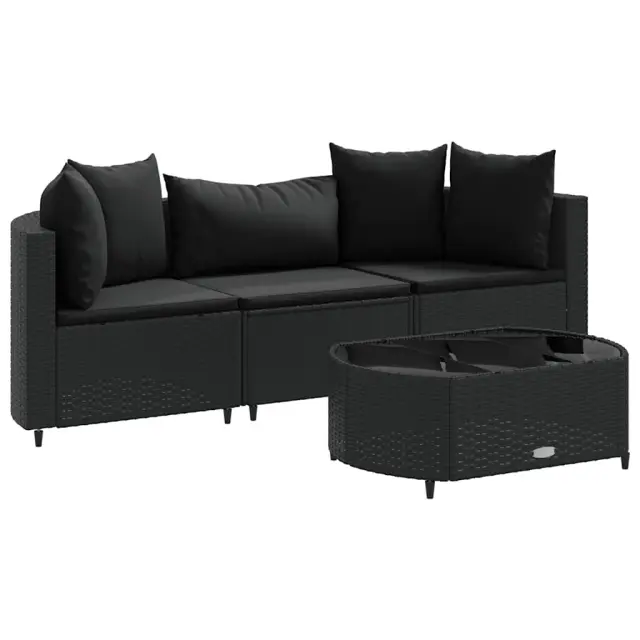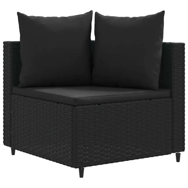 Ta vrtna sedežna garnitura je popoln dodatek za vaše dvorišče, teraso ali verando, saj zagotavlja udoben in vabljiv prostor za klepet z družino in prijatelji ali preprosto za sprostitev in uživanje na prostem. Vzdržljiv material: PE ratan, znan tudi kot poli ratan, je močan sintetični material, ki zahteva malo vzdrževanja in je videti kot naravni ratan. Je lahek, enostaven za čiščenje in se zaradi svoje vzdržljivosti in odpornosti na vremenske vplive pogosto uporablja za zunanje pohištvo.Robusten in stabilen okvir: Jeklen okvir s prašnim premazom je močan, stabilen, trpežen ter odporen na korozijo in slabe vremenske razmere, kar zagotavlja dolgotrajno delovanje.Modularna zasnova: Ta komplet zunanjega pohištva ima modularno zasnovo, zaradi česar je popolnoma prilagodljiv in enostaven za premikanje, tako da lahko zunanjo garnituro postavite kakor koli želite.Udobno sedenje: To zunanje pohištvo z debelo oblazinjenimi blazinami zagotavlja udobno sedenje.Steklena mizna plošča: Površina zunanje mize je izdelana iz močnega in trpežnega kaljenega stekla, kar omogoča enostavno čiščenje z vlažno krpo in vašemu zunanjemu prostoru doda pridih elegance. Dobro je vedeti:Če želite, da vaše zunanje pohištvo ostane lepo, vam priporočamo, da ga zaščitite z vodoodporno prevleko.Maksimalna nosilnost (na sedež): 110 kgUV-odpornoPotrebno sestavljanje: DaKotni sedež:Barva: ČrnaMaterial: PE ratan, jeklen okvir s prašnim premazomDimenzije: 63 x 63 x 57,5 cm (Š x G x V)Velikost sedeža: 55 x 55 cm (Š x G)Višina sedeža, merjena od tal: 31 cmSrednji sedež:Barva: ČrnaMaterial: PE ratan, jeklen okvir s prašnim premazomDimenzije: 63 x 63 x 57,5 cm (Š x G x V)Velikost sedeža: 63 x 55 cm (Š x G)Višina sedeža, merjena od tal: 31 cmNastavljive nogeKlubska mizica:Barva: ČrnaMaterial: PE ratan, jeklo s prašnim premazom, kaljeno stekloDimenzije: 78 x 53 x 29,5 cm (Š x G x V)Debelina stekla: 4 mmNastavljive nogeBlazina:Barva: ČrnaMaterial prevleke: Tkanina (100 % poliester)Polnilo sedežne blazine: PenaPolnilo hrbtne blazine: bombažna vlaknaDimenzije sedežne blazine: 55/63 x 55 x 3 cm (Š x G x D)Dimenzije hrbtne blazine (L): 68 x 37 cm (Š x G)Dimenzije hrbtne blazine (S): 45 x 37 cm (Š x G) Paket vsebuje:2 x Kotni sedež1 x Sredinski sedež1 x Klubska mizica3 x Blazina za sedež5 x Blazina za hrbet Največ 110 kg na sedež.