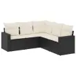 Seti vrtnega pohištva - Vrtna garnitura - Vrtni pohištvo set 5-delna z blazinami črn poli ratan