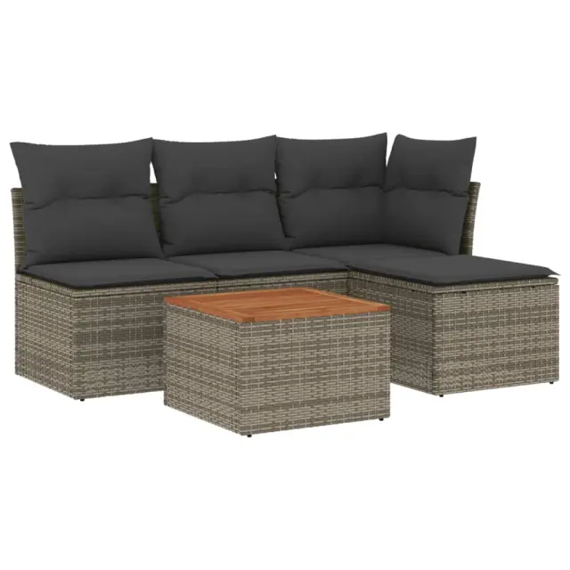 Ta vrtna sedežna garnitura je popoln dodatek za vaše dvorišče, teraso ali verando, saj zagotavlja udoben in vabljiv prostor za klepet z družino in prijatelji ali preprosto za sprostitev in uživanje na prostem. Vzdržljiv material: PE ratan, znan tudi kot poli ratan, je močan sintetični material, ki zahteva malo vzdrževanja in je videti kot naravni ratan. Je lahek, enostaven za čiščenje in se zaradi svoje vzdržljivosti in odpornosti na vremenske vplive pogosto uporablja za zunanje pohištvo.Udobno sedenje: To zunanje pohištvo z debelo oblazinjenimi blazinami zagotavlja udobno sedenje.Stabilna mizna plošča, ki je enostavna za čiščenje: Ta vrtna miza ima ploščo iz akacijevega lesa, ki je čvrsta, vzdržljiva in jo je enostavno čistiti z vlažno krpo.Prevleko je mogoče odstraniti in oprati: Te sedežne blazine imajo odstranljive prevleke za lažje pranje in vzdrževanje.Modularna zasnova: Ta komplet zunanjega pohištva ima modularno zasnovo, zaradi česar je popolnoma prilagodljiv in enostaven za premikanje, tako da lahko zunanjo garnituro postavite kakor koli želite. Dobro je vedeti:Če želite, da vaše zunanje pohištvo ostane lepo, vam priporočamo, da ga zaščitite z vodoodporno prevleko.Maksimalna nosilnost (na sedež): 110 kgUV-odpornoPlastične nastavljive nogePotrebno sestavljanje: DaKotni sedež:Barva: SivaMaterial: PE ratan, jeklen okvir s prašnim premazomDimenzije: 62 x 62 x 69 cm (Š x G x V)Velikost sedeža: 55 x 55 cm (Š x G)Višina sedeža, merjena od tal: 37 cmSrednji sedež:Barva: SivaMaterial: PE ratan, jeklen okvir s prašnim premazomDimenzije: 55 x 62 x 69 cm (Š x G x V)Velikost sedeža: 55 x 55 cm (Š x G)Višina sedeža, merjena od tal: 37 cmMiza:Barva: Siva in rjavaMaterial: PE ratan, prašno premazano jeklo, trden akacijev les z oljnim premazomDimenzije: 55 x 55 x 37 cm (D x Š x V)Stolček za noge:Barva: SivaMaterial: PE ratan, jeklen okvir s prašnim premazomDimenzije: 55 x 55 x 37 cm (Š x G x V)Blazina:Barva: Temno sivaMaterial prevleke: Tkanina (100 % poliester)Polnilo sedežne blazine: PenaPolnilo hrbtne blazine: bombažna vlaknaDimenzije sedežne blazine: 55 x 55 x 3 cm (Š x G x D)Dimenzije hrbtne blazine: 55 x 45 x 13 cm (D x Š x D)Paket vsebuje:1 x Vrtna miza1 x Kotni kavč2 x Sredinski kavč1 x Vrtni stolček za noge4 x Blazina za hrbet4 x Sedežna blazina s snemljivo in pralno prevleko
