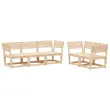 Ta vrtna sedežna garnitura je popoln dodatek za vaše dvorišče, teraso ali verando, saj zagotavlja udoben in vabljiv prostor za klepet z družino in prijatelji ali preprosto za sprostitev in uživanje na prostem. Trdna borovina: Trdna borovina je čudovit naravni material. Borovina ima ravne vzorce, grče pa dajejo materialu njegov značilen, rustikalen videz.Udobno sedenje: To zunanje pohištvo z nasloni za hrbet zagotavlja udobno sedenje.Zasnova iz letvic: Zasnova zunanjega kavča iz letvic učinkovito preprečuje nabiranje vode, kar zagotavlja, da ostane sedež suh in brez gnitja.Modularna zasnova: Ta komplet zunanjega pohištva ima modularno zasnovo, zaradi česar je popolnoma prilagodljiv in enostaven za premikanje, tako da lahko zunanjo garnituro postavite kakor koli želite. Dobro je vedeti:Če želite, da vaše zunanje pohištvo ostane lepo, vam priporočamo, da ga zaščitite z vodoodporno prevleko.Maksimalna nosilnost (na sedež): 110 kgPotrebno sestavljanje: DaKavč brez naslonov za roke:Material: Trdna borovina (neobdelana)Dimenzije: 63,5 x 73 x 78 cm (Š x G x V)Velikost sedeža: 63,5 x 63,5 cm (Š x G)Višina naslonjala za hrbet: 40 cmVišina sedeža, merjena od tal: 38 cmKotni kavč:Material: Trdna borovina (neobdelana)Dimenzije: 73 x 73 x 78 cm (Š x G x V)Višina sedeža, merjena od tal: 38 cmVelikost sedeža: 63,5 x 63,5 cm (Š x G)Paket vsebuje:4 x Kotni kavč1 x Kavč brez naslonjal za roke Največ 110 kg na sedež.