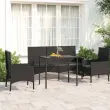S to vrtno sedežno garnituro uživajte v prijetnem pitju kave v svojem zunanjem prostoru! Je odličen dodatek za vaš vrt in teraso, saj bo naredila trajen vtis! Vzdržljiv material: Poli ratan je izjemno odporen material, ki je vzdržljiv v različnih vremenskih razmerah. Prav tako potrebuje malo vzdrževanja.Mehke blazine: Vrtni garnituri so priložene debele, odstranljive blazine, ki zagotavljajo največje udobje pri sedenju.Udobna naslonjala za roke in hrbet: Zaradi naslonjal za roke in hrbet si lahko udobno odpočijete roke in hrbet.Trdna mizna plošča: Trdna površina te vrtne mizice ponuja prostor za odlaganje prigrizkov, košar s sadjem, okrasnih predmetov in drugih potrebščin. Dobro je vedeti:Za čim lažjo montažo je vsakemu izdelku priložen priročnik. Opomba:Če želite, da vaše zunanje pohištvo ostane lepo, vam priporočamo, da ga zaščitite z vodoodporno prevleko.Barva: ČrnaMiza:Material: PE ratan, jeklo s prašnim premazom, stekloDimenzije: 90 x 50 x 67 cm (D x Š x V)Stol:Material: PE ratan, jeklen okvir s prašnim premazomDimenzije: 45 x 51 x 85 cm (Š x G x V)Velikost naslonjala: 45 x 50 cm (Š x V)Višina sedeža, merjena od tal: 38 cm Višina naslonjal za roke, merjena od tal: 54 cm Klop:Material: PE ratan, jeklen okvir s prašnim premazom Dimenzije: 140 x 51 x 85 cm (Š x G x V)Velikost naslonjala: 140 x 50 cm (Š x V) Širina sedeža: 136 cm Globina sedeža: 45 cmVišina sedeža, merjena od tal: 38 cmVišina naslonjal za roke, merjena od tal: 54 cmBlazina:Material: Blago (100 % poliester)Material polnila: PenaDebelina: 3 cmPaket vsebuje:2 x Stol1 x Klop1 x Miza5 x Blazina za sedež