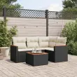Ta vrtna sedežna garnitura je popoln dodatek za vaše dvorišče, teraso ali verando, saj zagotavlja udoben in vabljiv prostor za klepet z družino in prijatelji ali preprosto za sprostitev in uživanje na prostem. Vzdržljiv material: PE ratan, znan tudi kot poli ratan, je močan sintetični material, ki zahteva malo vzdrževanja in je videti kot naravni ratan. Je lahek, enostaven za čiščenje in se zaradi svoje vzdržljivosti in odpornosti na vremenske vplive pogosto uporablja za zunanje pohištvo.Stabilna mizna plošča, ki je enostavna za čiščenje: Ta vrtna miza ima ploščo iz akacijevega lesa, ki je čvrsta, vzdržljiva in jo je enostavno čistiti z vlažno krpo.Prevleko je mogoče odstraniti in oprati: Te sedežne blazine imajo odstranljive prevleke za lažje pranje in vzdrževanje.Robusten in stabilen okvir: Prašno barvan jekleni okvir zagotavlja, da je vrtno pohištvo močno in stabilno za vsakodnevno uporabo na prostem.Modularna zasnova: Ta komplet zunanjega pohištva ima modularno zasnovo, zaradi česar je popolnoma prilagodljiv in enostaven za premikanje, tako da lahko zunanjo garnituro postavite kakor koli želite. Dobro je vedeti:Če želite, da vaše zunanje pohištvo ostane lepo, vam priporočamo, da ga zaščitite z vodoodporno prevleko.Maksimalna nosilnost (na sedež): 110 kgUV-odpornoPotrebno sestavljanje: DaKotni sedež:Barva: ČrnaMaterial: PE ratan, jeklen okvir s prašnim premazomDimenzije: 62 x 62 x 69 cm (Š x G x V)Velikost sedeža: 55 x 55 cm (Š x G)Višina sedeža, merjena od tal: 37 cmSrednji sedež:Barva: ČrnaMaterial: PE ratan, jeklen okvir s prašnim premazomDimenzije: 55 x 62 x 69 cm (Š x G x V)Velikost sedeža: 55 x 55 cm (Š x G)Višina sedeža, merjena od tal: 37 cmKavč z naslonjali za roke:Barva: ČrnaMaterial: PE ratan, jeklen okvir s prašnim premazomDimenzije: 61,5 x 62 x 69 cm (Š x G x V)Velikost sedeža: 55 x 55 cm (Š x G)Višina sedeža, merjena od tal: 37 cmVišina naslonjal za roke od tal: 55 cmMiza:Barva: ČrnaMaterial: PE ratan, prašno premazano jeklo, trden akacijev les z oljnim premazomDimenzije: 55 x 55 x 37 cm (D x Š x V)Blazina:Barva: Kremno bela Material prevleke: Tkanina (100 % poliester)Polnilo sedežne blazine: PenaPolnilo hrbtne blazine: bombažna vlaknaDimenzije sedežne blazine: 55 x 55 x 3 cm (Š x G x D)Dimenzije hrbtne blazine: 55 x 45 x 13 cm (D x Š x D)Paket vsebuje:1 x Kotni sedež1 x Sredinski sedež2 x Kavč z naslonjali za roke1 x Vrtna miza5 x Blazina za hrbet4 x Sedežna blazina s snemljivo in pralno prevleko
