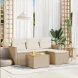Seti vrtnega pohištva - Vrtna garnitura - Vrtni pohištvo set 5-delna z blazinami bež poli ratan