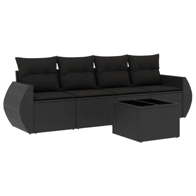 Seti vrtnega pohištva - Vrtna garnitura - Vrtni pohištvo set 5-delna z blazinami črn poli ratan