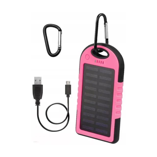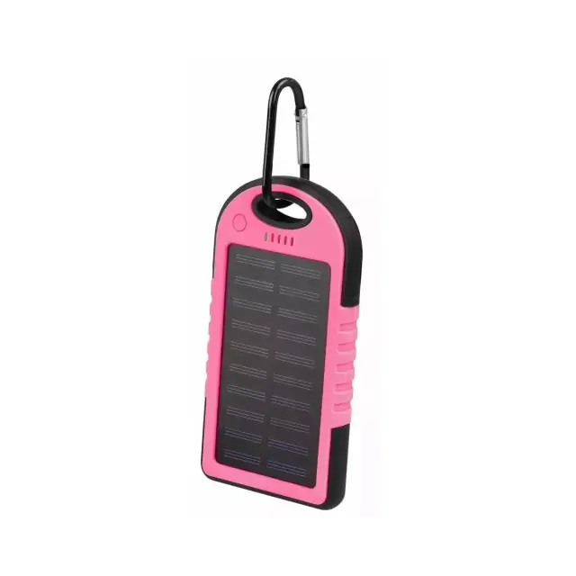 Setty, 5 000 mAh dvojna sončna baterija USB s karabinom, Roza