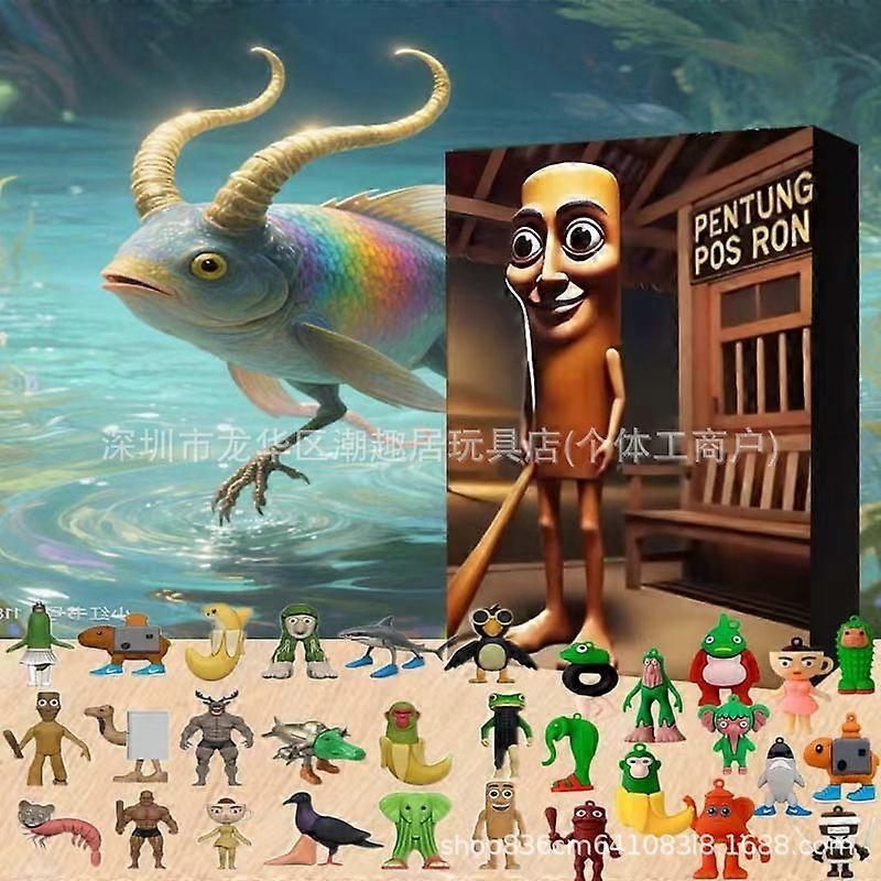 Shanhaijing TungTungSahur Tongtong lesene palice, ročno izdelan pisarniški obesek, škatla za božične žaluzije, 24 kosov