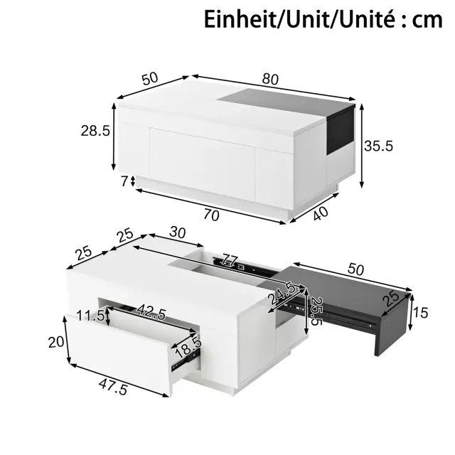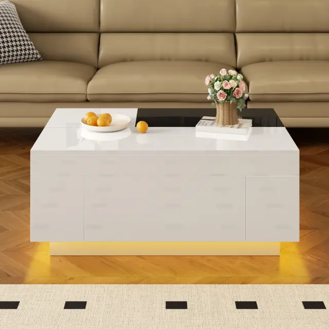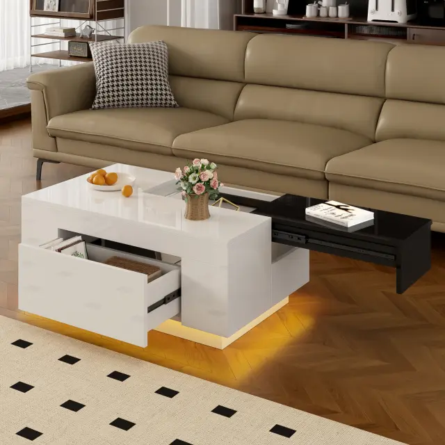 Sijajna klubska mizica z LED osvetlitvijo, raztegljiva, prostor za shranjevanje, 16 barv – za vašo dnevno sobo.