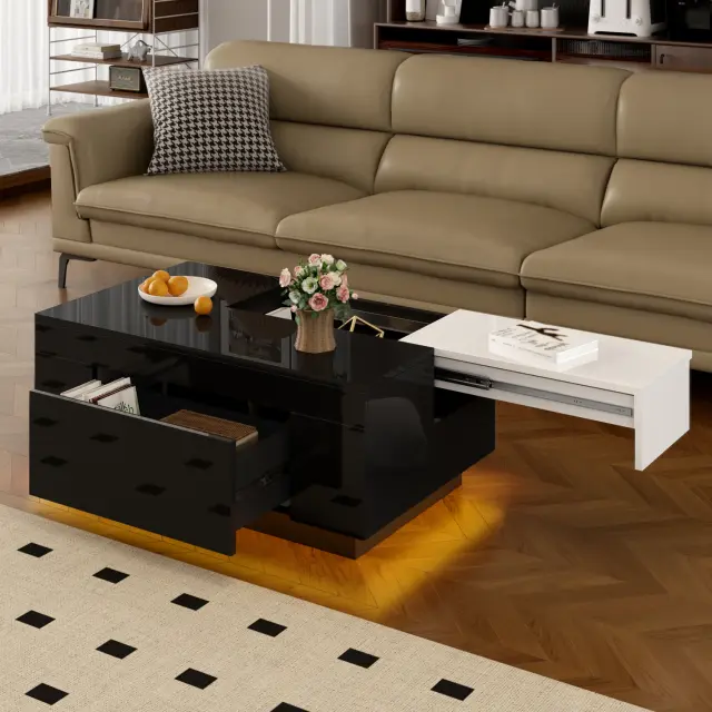 Sijajna klubska mizica z LED osvetlitvijo, raztegljiva, prostor za shranjevanje, 16 barv – za vašo dnevno sobo.