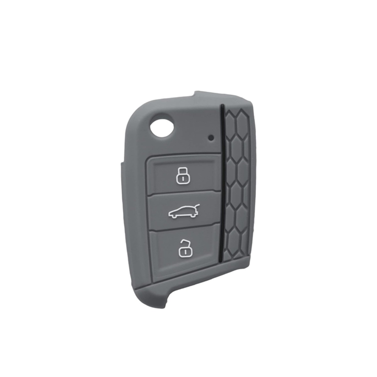 Silicone Key Cover Compatible with Volkswagen Golf 7 — Honeycomb Soft Key Fob Protector Gray
