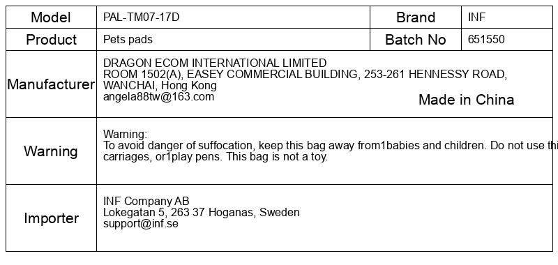 Opozorilo: Da bi se izognili nevarnosti zadušitve, vrečko hranite izven dosega dojenčkov in otrok. Vrečke ne uporabljajte v otroških posteljicah, vozičkih ali igralih. Ta vreča ni igrača.