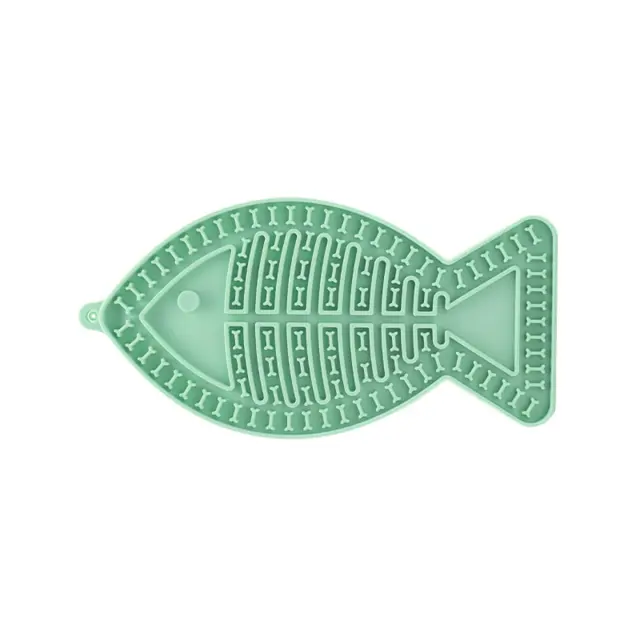 Silikonska podloga za lizanje za hišne živali v obliki ribe - Počasni podajalnik s priseski Green