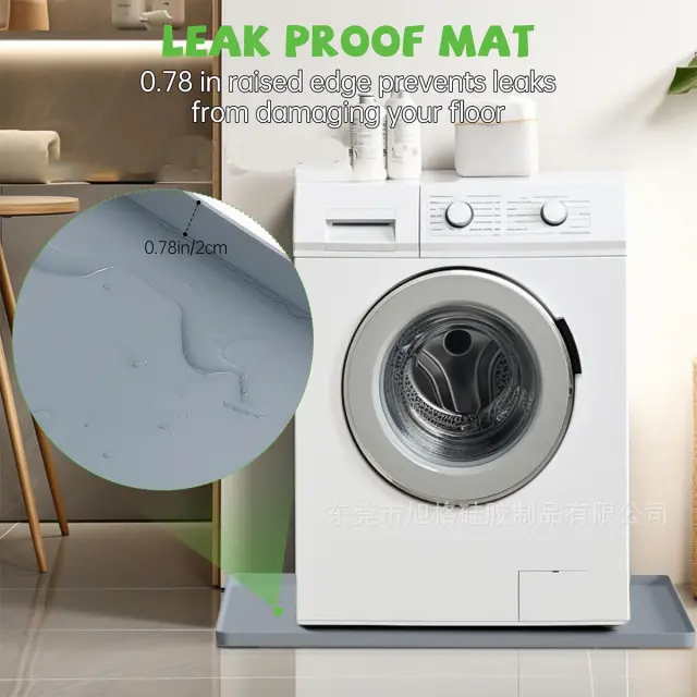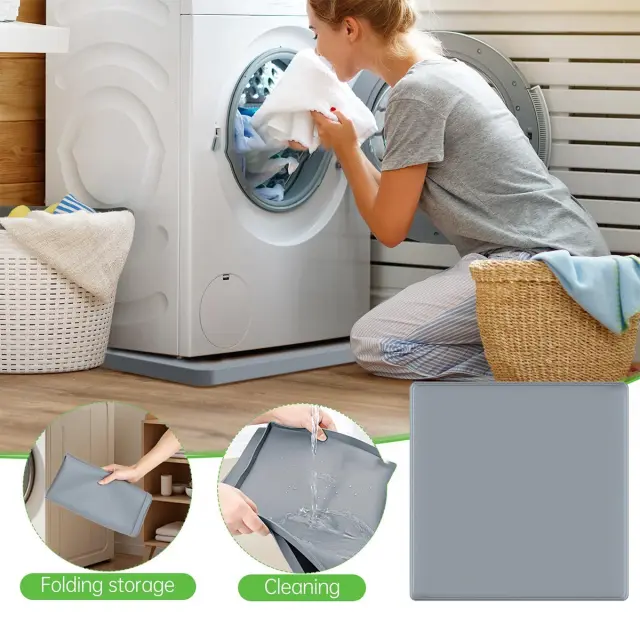 Vodoodporna in protizdrsna zaščita: Ta podloga za pralni stroj, izdelana iz vrhunskega silikona, zagotavlja odlično vodoodporno zaščito za vaša tla. Deluje kot ovira proti razlitjem in puščanjem, preprečuje poškodbe zaradi vode in rast plesni. Protizdrsna površina zagotavlja, da vaš pralni stroj ostane varno na mestu, tudi med cikli hitrega ožemanja, kar zmanjšuje tveganje nenamernega premikanja ali prevračanja. Ta dodatna stabilnost prispeva k varnejšemu delovanju in preprečuje morebitne poškodbe naprave in okolice. Idealna za uporabo v kopalnicah, pralnicah ali vseh prostorih, kjer je prisotna vlaga.