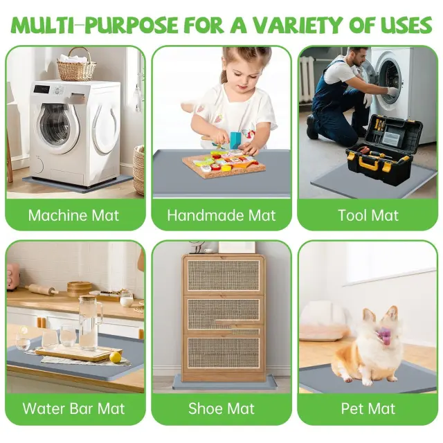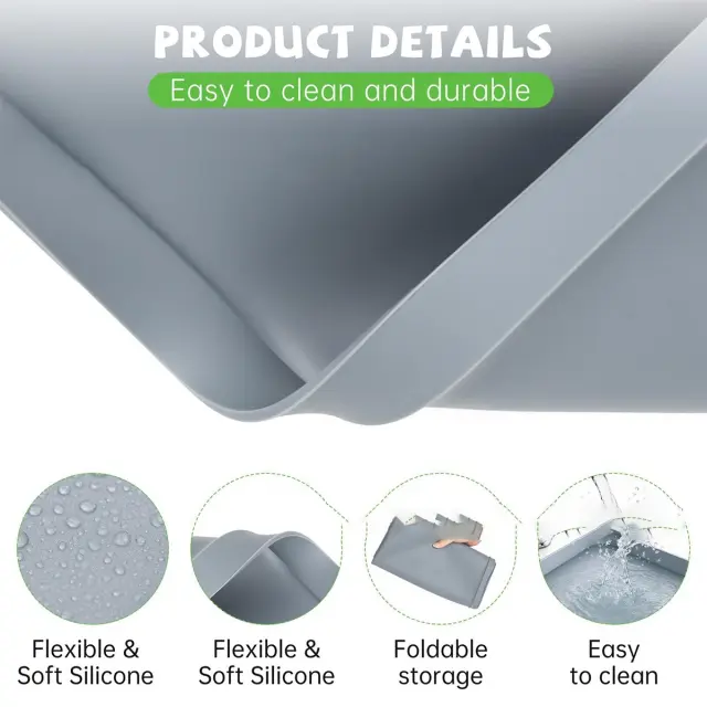Zložljiva in enostavna za čiščenje: Zložljiva zasnova te silikonske podloge za pralni stroj omogoča priročno shranjevanje, ko ni v uporabi, kar prihrani dragocen prostor v vašem domu. Njena gladka, neporozna površina je neverjetno enostavna za čiščenje. Enostavno jo obrišite z vlažno krpo ali gobo, da odstranite umazanijo, razlitja ali ostanke. Silikonski material je odporen tudi na madeže in vonjave, kar zagotavlja, da podloga ostane sveža in higienična tudi po dolgotrajni uporabi. Njena prilagodljivost omogoča enostavno premikanje in nameščanje pod vaš pralni stroj brez kakršnih koli težav, zaradi česar je praktičen in časovno varčen dodatek vaši rutini pranja perila.