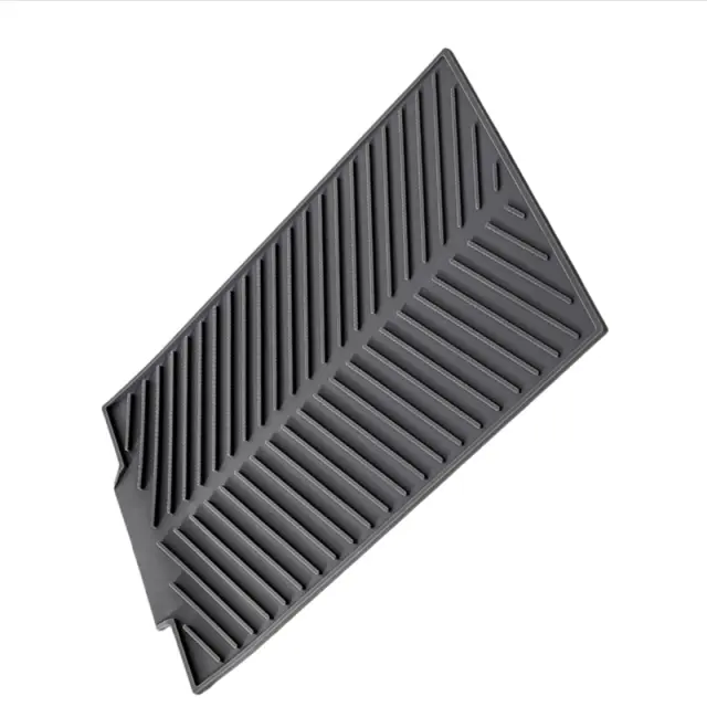 Prostoru prijazna zasnova: Ta podloga za sušenje posode je zasnovana tako, da prihrani dragocen prostor na pultu. Njegova fleksibilna silikonska konstrukcija omogoča enostavno zvijanje in shranjevanje v predalu ali omari, ko ni v uporabi, zaradi česar je idealna za kuhinje z omejenim prostorom na pultu.