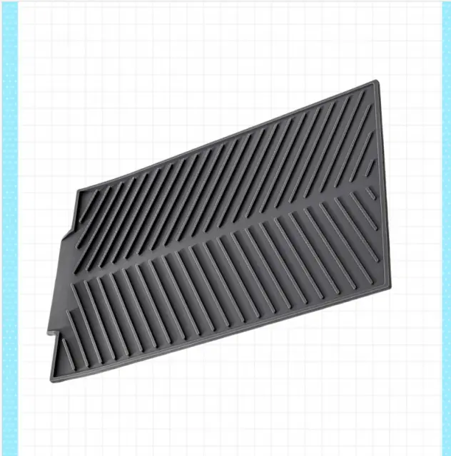 Hitro in učinkovito sušenje: Naša silikonska podloga za sušenje ima dvignjen grebenast dizajn, ki omogoča optimalen pretok zraka, kar zagotavlja, da se vaša posoda, steklovina in jedilni pribor hitro in učinkovito posušijo. Poslovite se od vlažnih kuhinjskih krp in pozdravite bolj higiensko rešitev za sušenje.