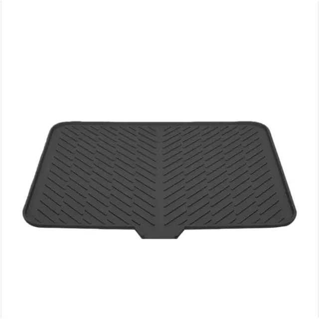 Učinkovito odvajanje vode: Poševna oblika te silikonske podloge za sušenje posode zagotavlja učinkovito odvajanje vode, preprečuje zastajanje vode in ohranja vašo kuhinjsko površino suho. Strateško nameščeni grebeni usmerjajo vodo neposredno v umivalnik, kar pospešuje sušenje posode in pripomočkov. Ta funkcija je še posebej uporabna v prometnih kuhinjah, kjer je hitro čiščenje bistvenega pomena, zaradi česar je idealen dodatek za vsak dom ali restavracijo. Poševna oblika pomaga tudi pri preprečevanju rasti plesni in glivic, kar zagotavlja higienično okolje za vašo kuhinjsko posodo.