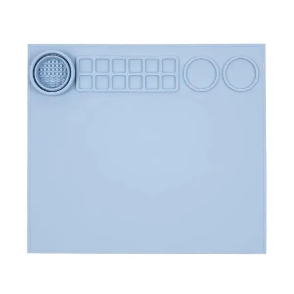 Ta vodoodporna, nelepljiva in nedrseča podloga, izdelana iz 100-odstotnega živilskega silikona, je kot nalašč za vse vaše ustvarjalnne potrebe. S 14 jamicami in območjem za mešanje je kot nalašč za organizacijo vaših potrebščin.