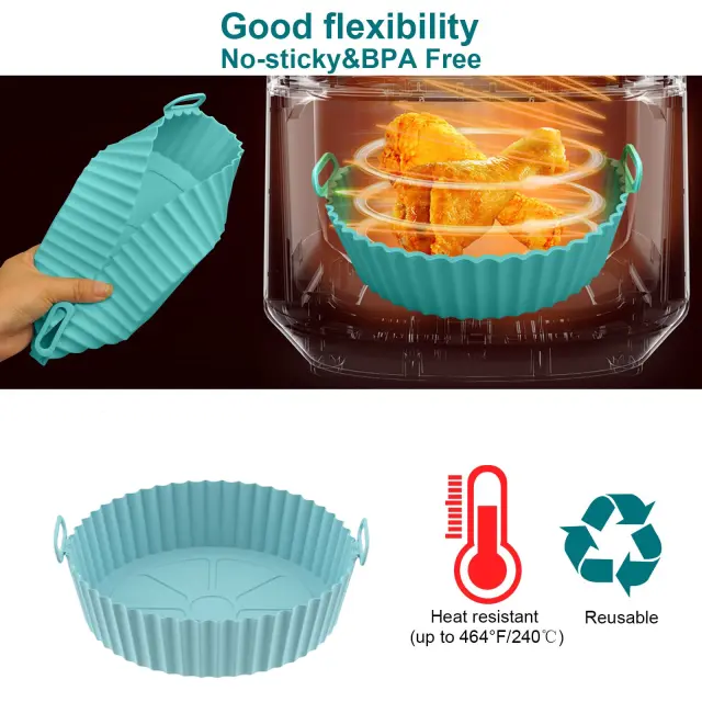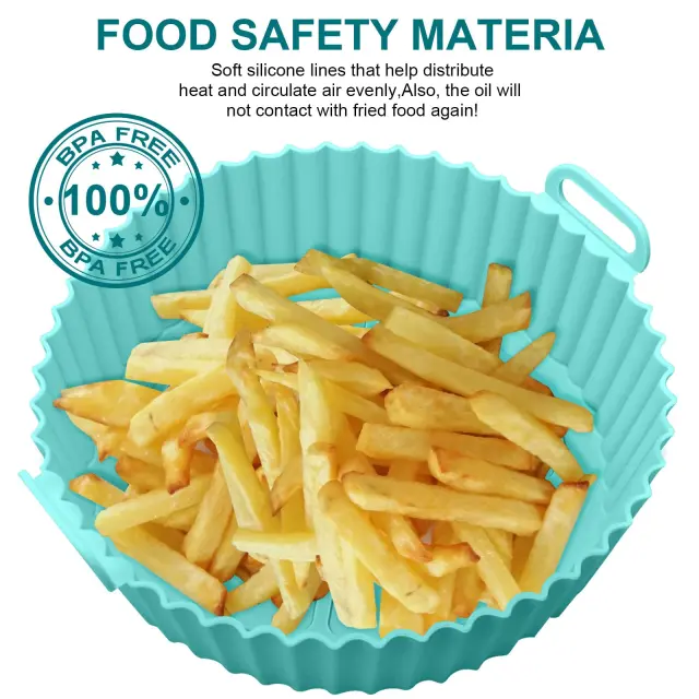 Če hrano postavite v posodo, se izognete lepljivim in zažganim ostankom v vašem Airfryerju. Praktičen dizajn z visokim robom. Olajša tudi vnos in iznašanje hrane. Posoda je izdelana iz silikona za živila, ki ga je enostavno vzdrževati. Lahko se pere v pomivalnem stroju.
