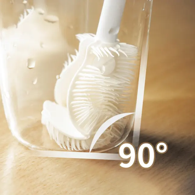 Zložljiva in praktična: Glava ščetke se lahko zloži pod različnimi koti, kar olajša čiščenje dna in kotov steklenic, skodelic in drugih posod. Fleksibilne silikonske ščetine učinkovito odstranjujejo trdovratne madeže, ne da bi pri tem praskale občutljive površine.