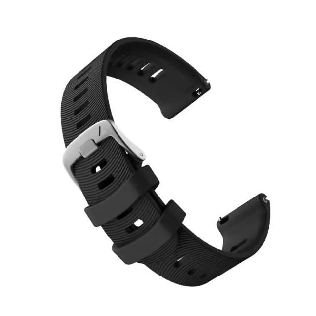 Udobno in varno prileganje: pas za uro, ki je izdelan iz visokokakovostnega silikona, zagotavlja mehko in udobno prileganje zapestju. Material tudi dobro zrači, zato je popoln tako za vsakodnevno uporabo kot tudi za intenzivne treninge. Varna kovinska zaponka zagotavlja, da vaša ura ostane na mestu, ne glede na to, kako aktivni ste.